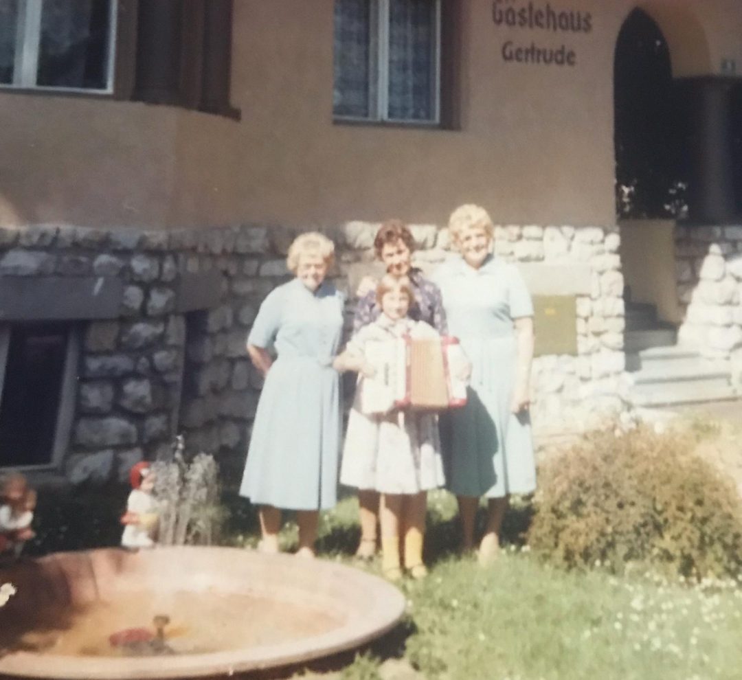 In den 60er dachten sich die beiden: „Warum nicht das Dach ein Stück höher schrauben?“ – und schwupps, wurde das Haus aufgestockt und ein Anbau kam dazu! Im Zuge dessen, wurde dieses Haus auch umgetauft in Gästehaus Gertrude (warum wohl ;-). Nebenbei schneiderte Hans mit seinen drei Angestellten in seiner Schneiderei die besten Anzüge und fuhr für ein Reiseunternehmen Taxi, als wäre er der Fahrer von James Bond.